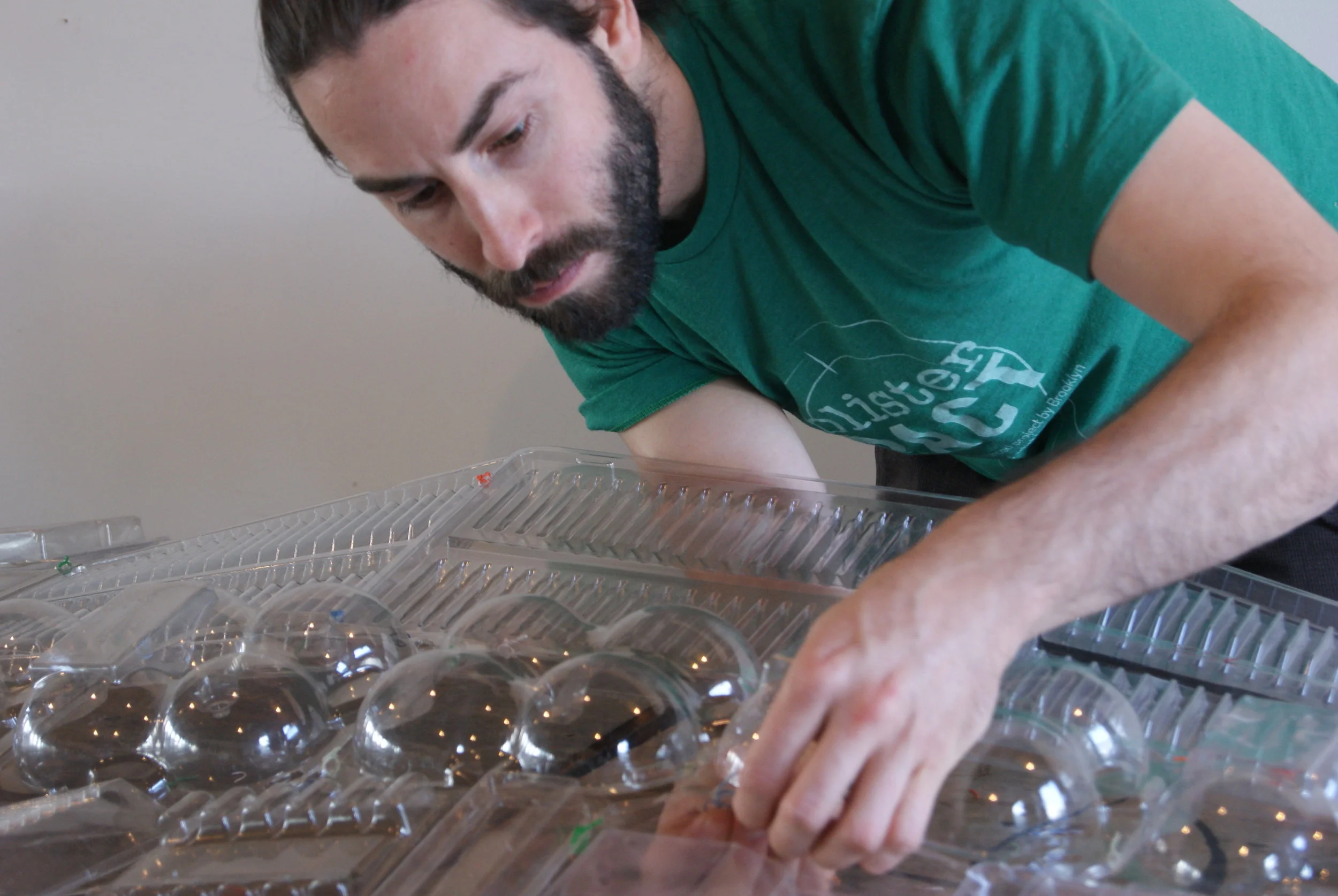 A thermoformed plastic container, also referred to as a blister pack or clamshell, is a ubiquitous form of plastic waste that is difficult to recycle and ultimately destined for the landfill. The primary goal of the artwork was to inform the community of the complexities of sustainable consumption, as well as provide a system to collectively remove the troublesome material from the local waste stream.
