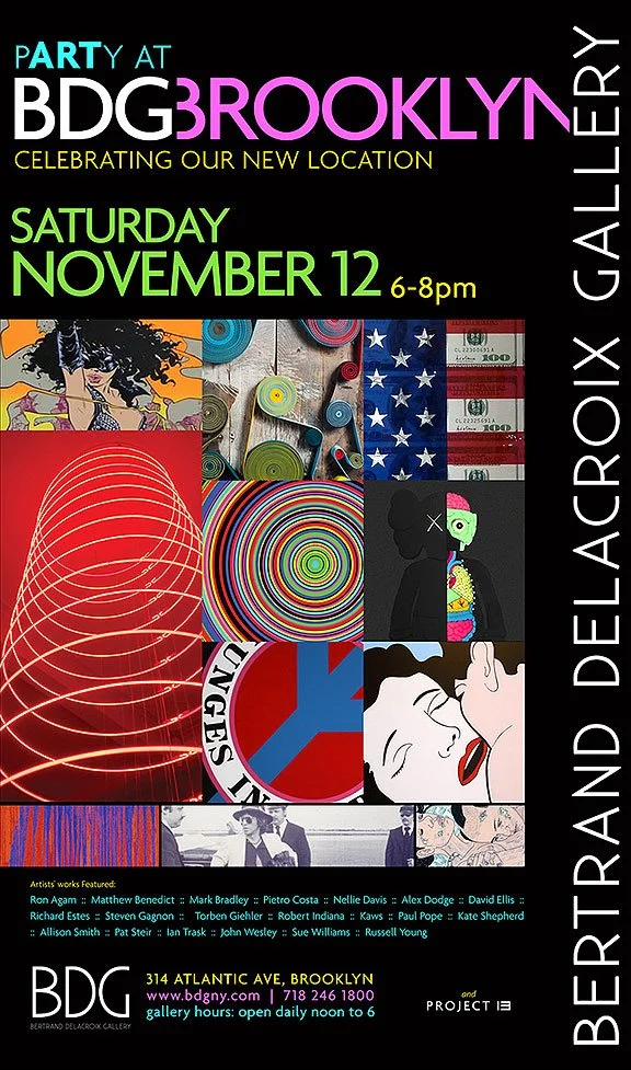 November 12th, a group show of original works and prints by Ian Trask as well as: Ron Agam, Matthew Benedict, Markus Bradley, Pietro Costa, Nellie Davis, Alex Dodge, David Ellis, Richard Estes, Steven Gagnon, Torben Giehler, Robert Indiana, Kaws, Paul Pope, Kate Shepherd, Allison Smith, Pat Steir , John Wesley, Sue Williams and Russell Young.