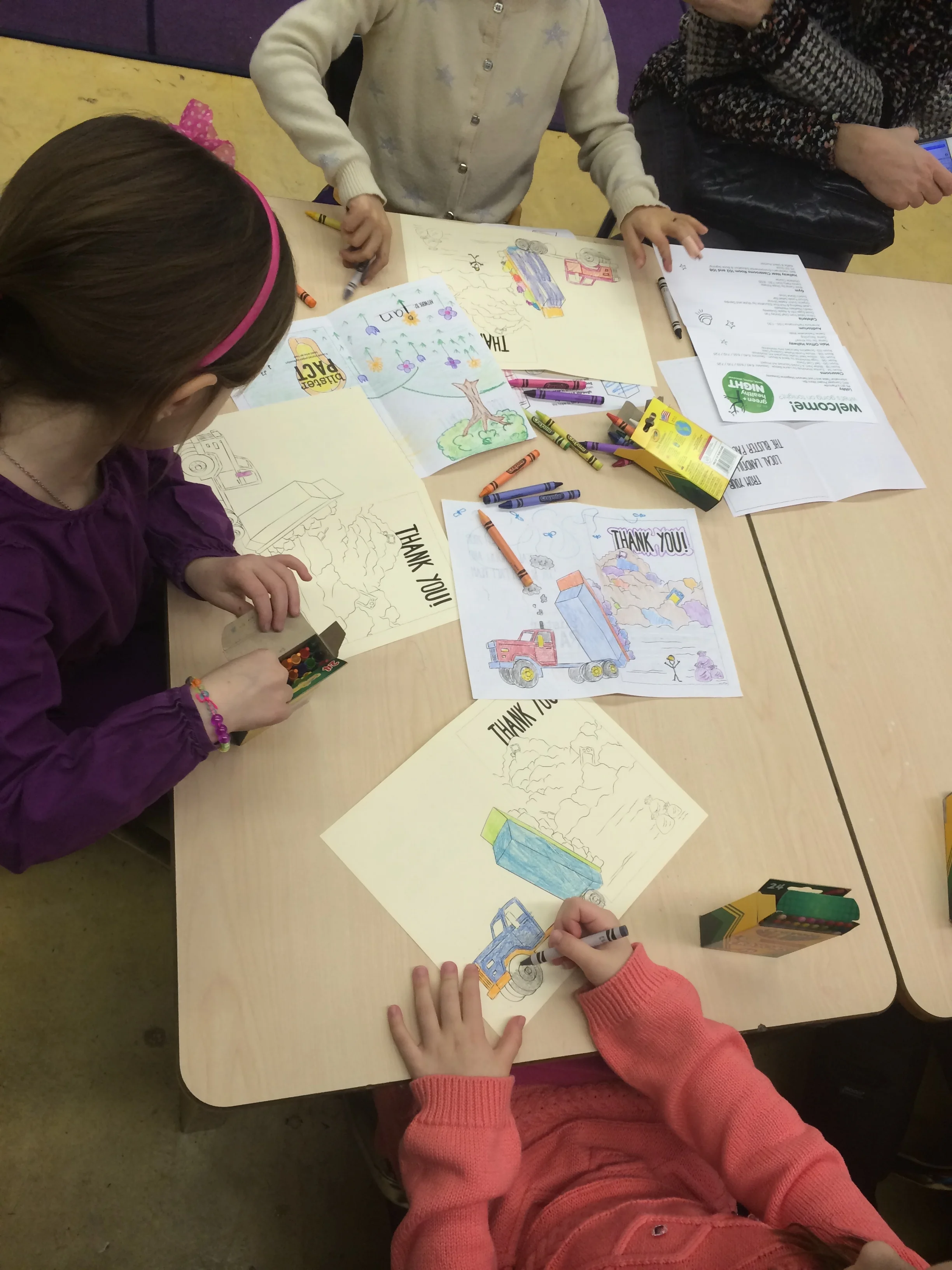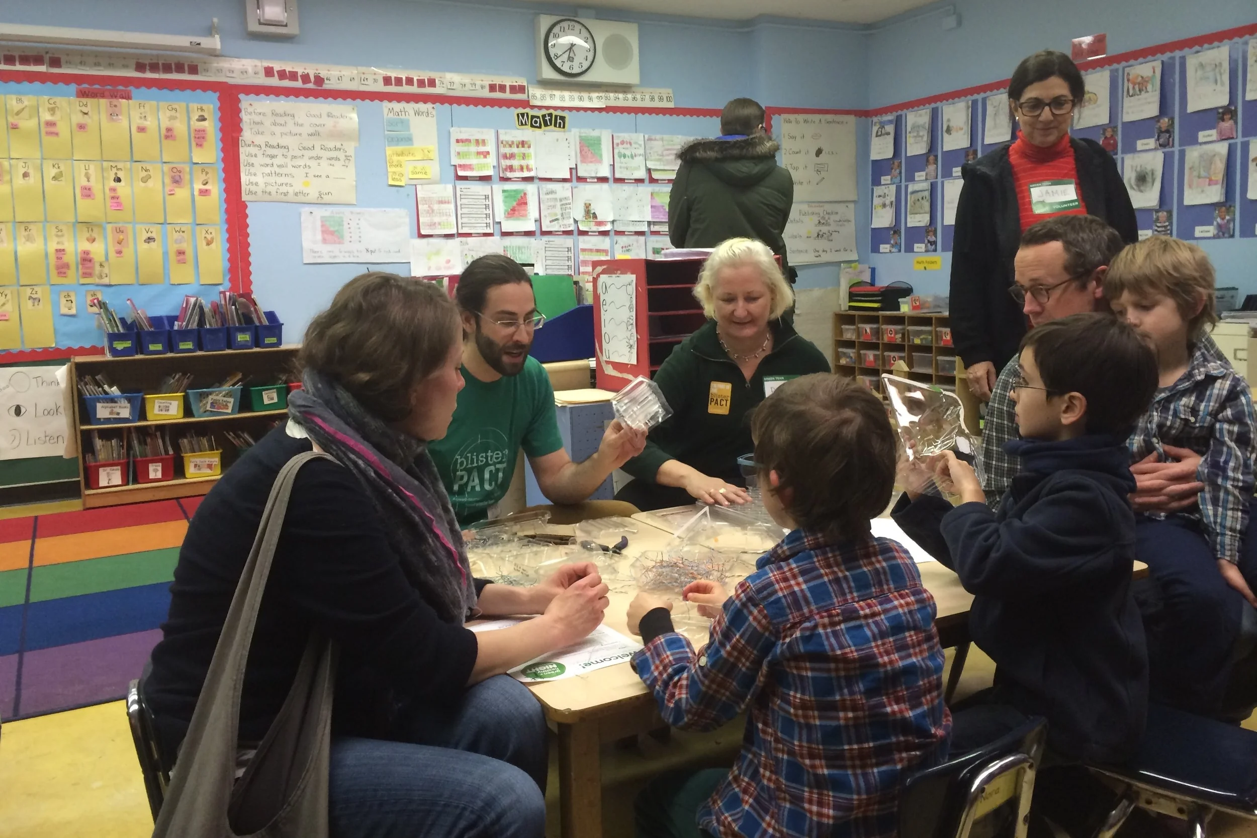 Blister Pact collaborated with Brooklyn Elementary school PS 321 in Park Slope to collect their plastic waste throughout January's Green & Healthy Month (conveniently right after holiday gifts!). It was a huge success with both students and parents contributing their blister packs. The month then culminated in a Green & Healthy Night on Thursday, January 29th, and we were invited to host an interactive evening. We had so much fun with these kids. They had a chance to learn and participate in Ian's fabrication process and colored in Thank You cards just for the Blister Pact Kickstarter rewards!